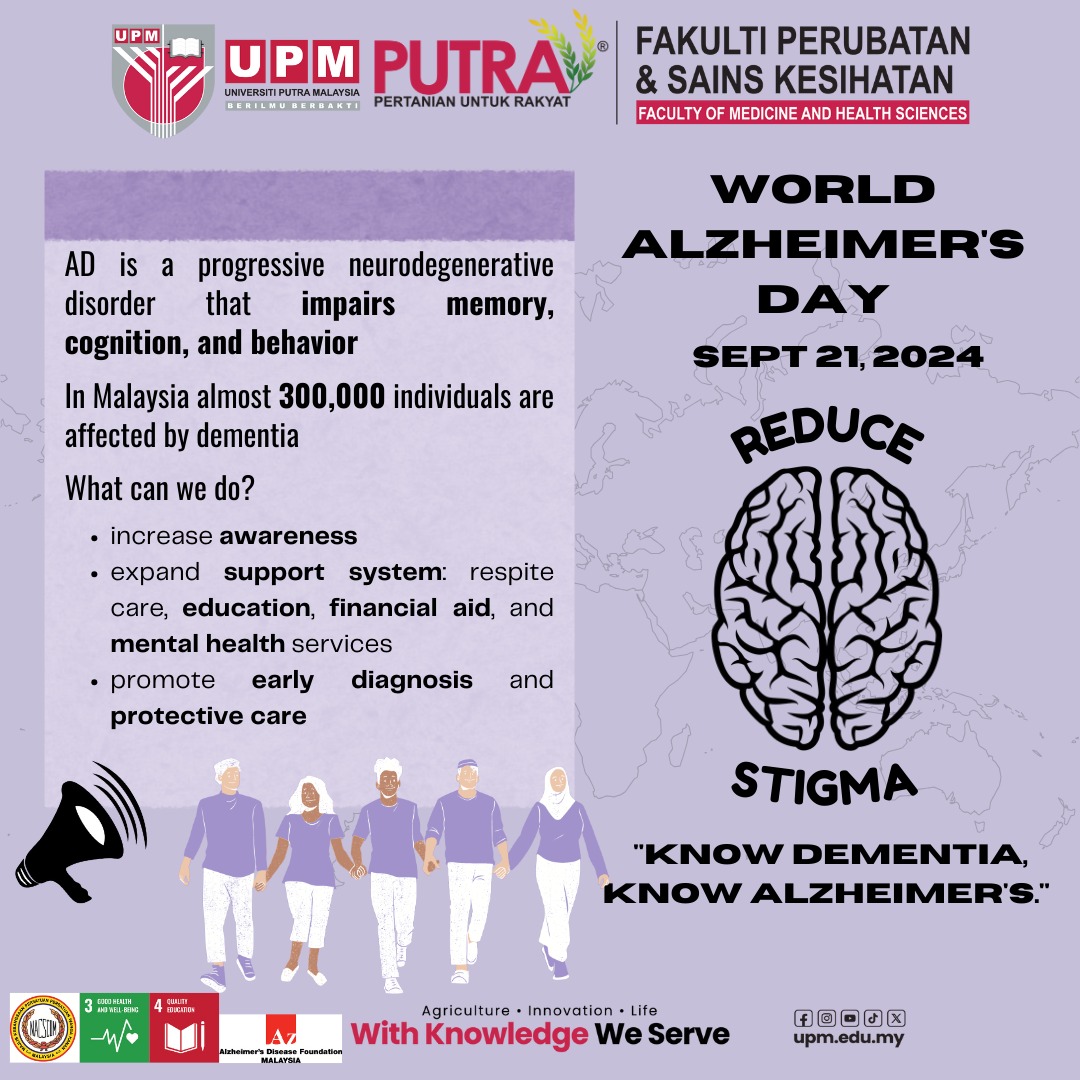 Organizations like the Alzheimer’s Disease Foundation Malaysia (ADFM), National Council of Senior Citizens Organizations Malaysia (NACSCOM), and Alzheimer’s Caregivers Malaysia are tirelessly working to support those affected. The public can make a difference by raising awareness, fostering community support, and reducing stigma. Through advocacy and active involvement, we can drive change, advance research, and enhance care for individuals with Alzheimer’s.